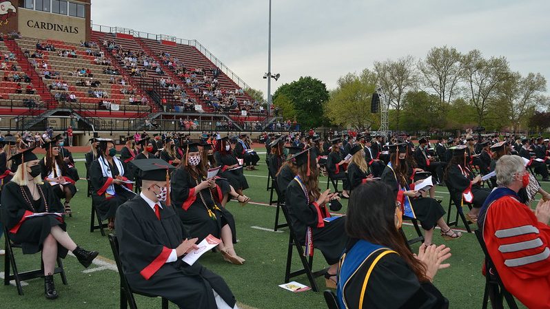 Approximately 210 members of the Class of 2020 returned to campus on Saturday, May 1, to walk across the stage. Their ceremony was cancelled in 2021, but they were not forgotten.