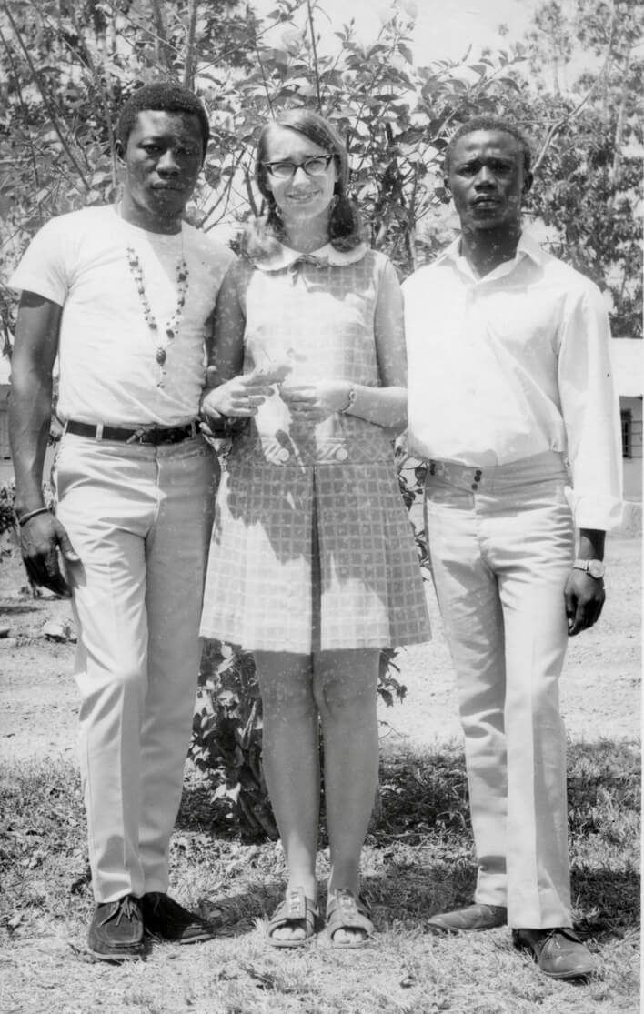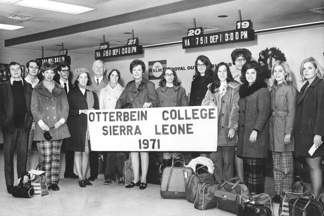 Carol stands with a group of fellow Otterbein students traveling to Sierra Leone in January 1971.