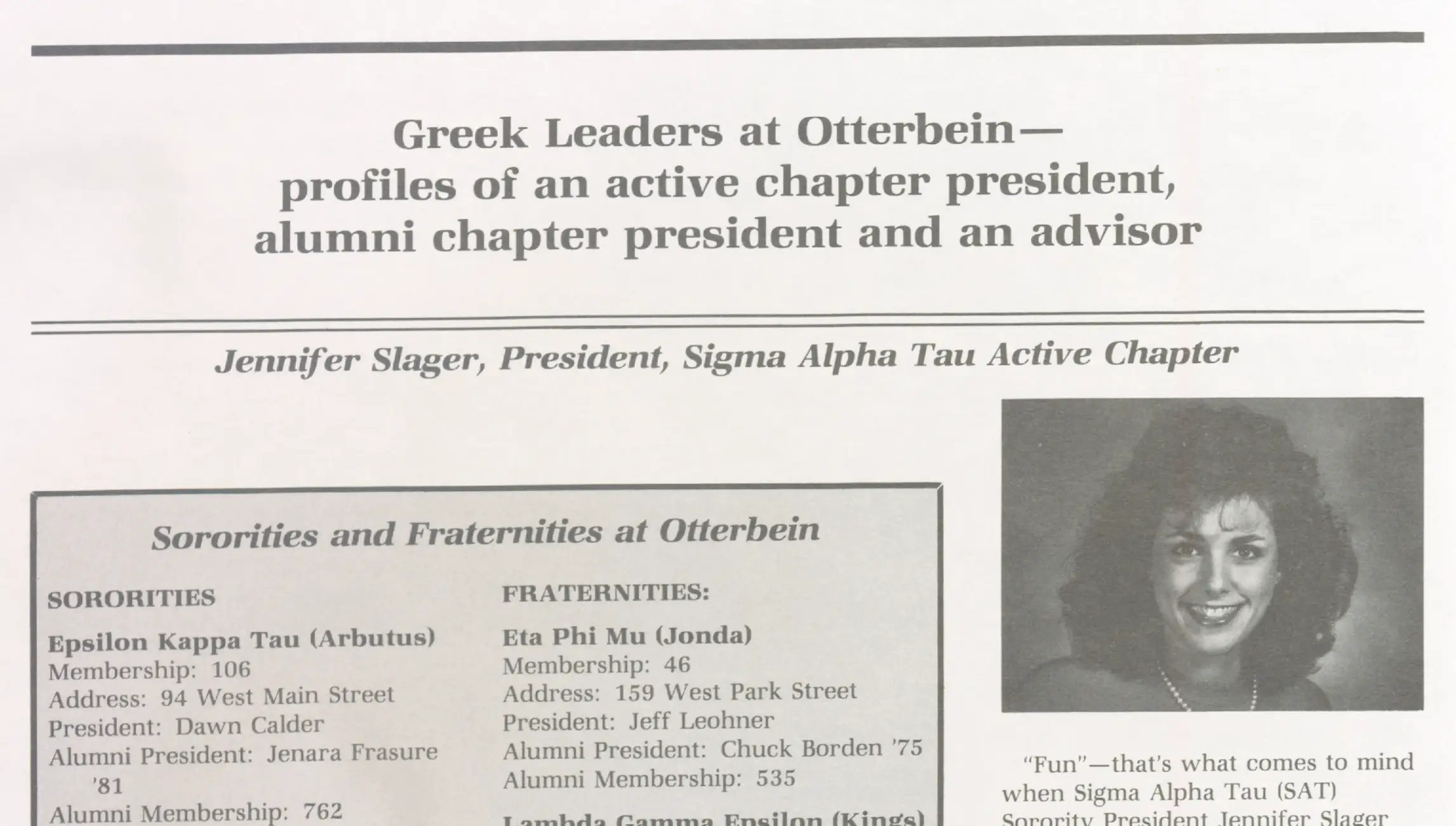 “During my senior year I was interviewed by the Towers staff about Greek life representing Sigma Alpha Tau. I loved the cover with all my Greek friends on it and my big ’80s hair picture on the inside. I held onto it for years and eagerly awaited the arrival of each issue to see who got a new job, who got married, and who had a baby. It was our form of social media!