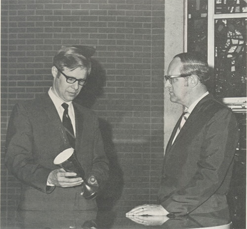 L-R: Rev. Duane Frayer ’53 was a Methodist minister who served Kent State students at the time of the shootings. Soon after, he handed his responsibilities to Rev. Donald Shilling ’54 .