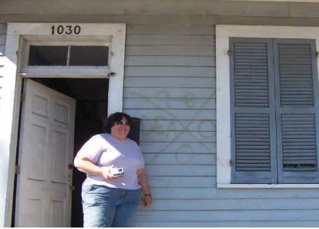 Rebecca Sebring at her home in St. Bernard Parish, Louisiana. The “x” on the house denotes there were no deaths there.
